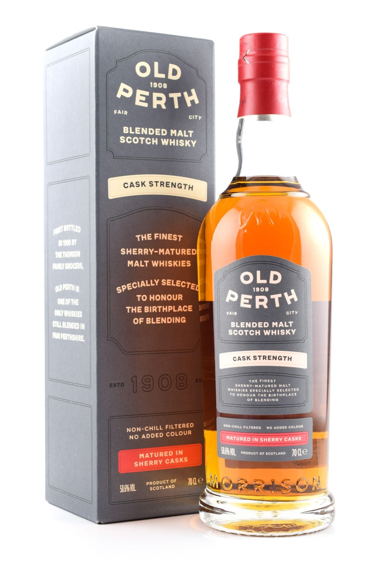 Der Old Perth Cask Strength ist ein kraftvoller Blended Malt Whisky, abgefüllt von Morrison Scotch Whisky Distillers. Er verkörpert den typischen Charakter der Speyside – elegant, fruchtig und zugleich tief sherrybetont. In echter Handwerkskunst gereift, wird er in natürlicher Fassstärke mit 58,6 % vol. abgefüllt – ungefiltert und ungefärbt.